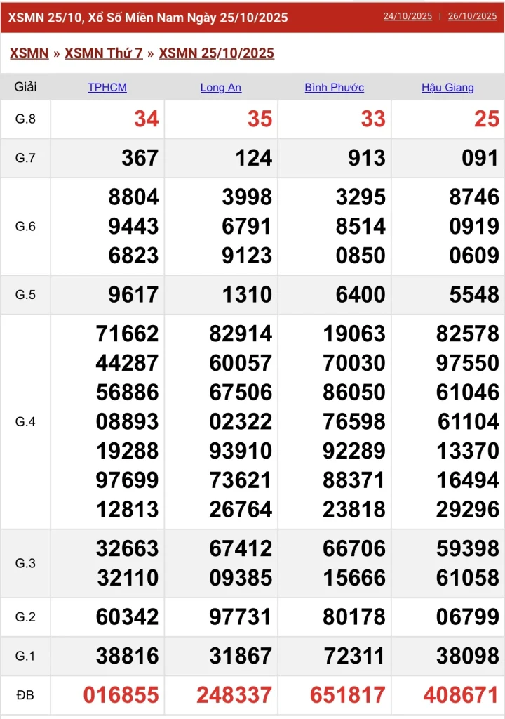 Chốt lô Tây Ninh đặc biệt ngày hôm nay 26/10/2025 như sau:
